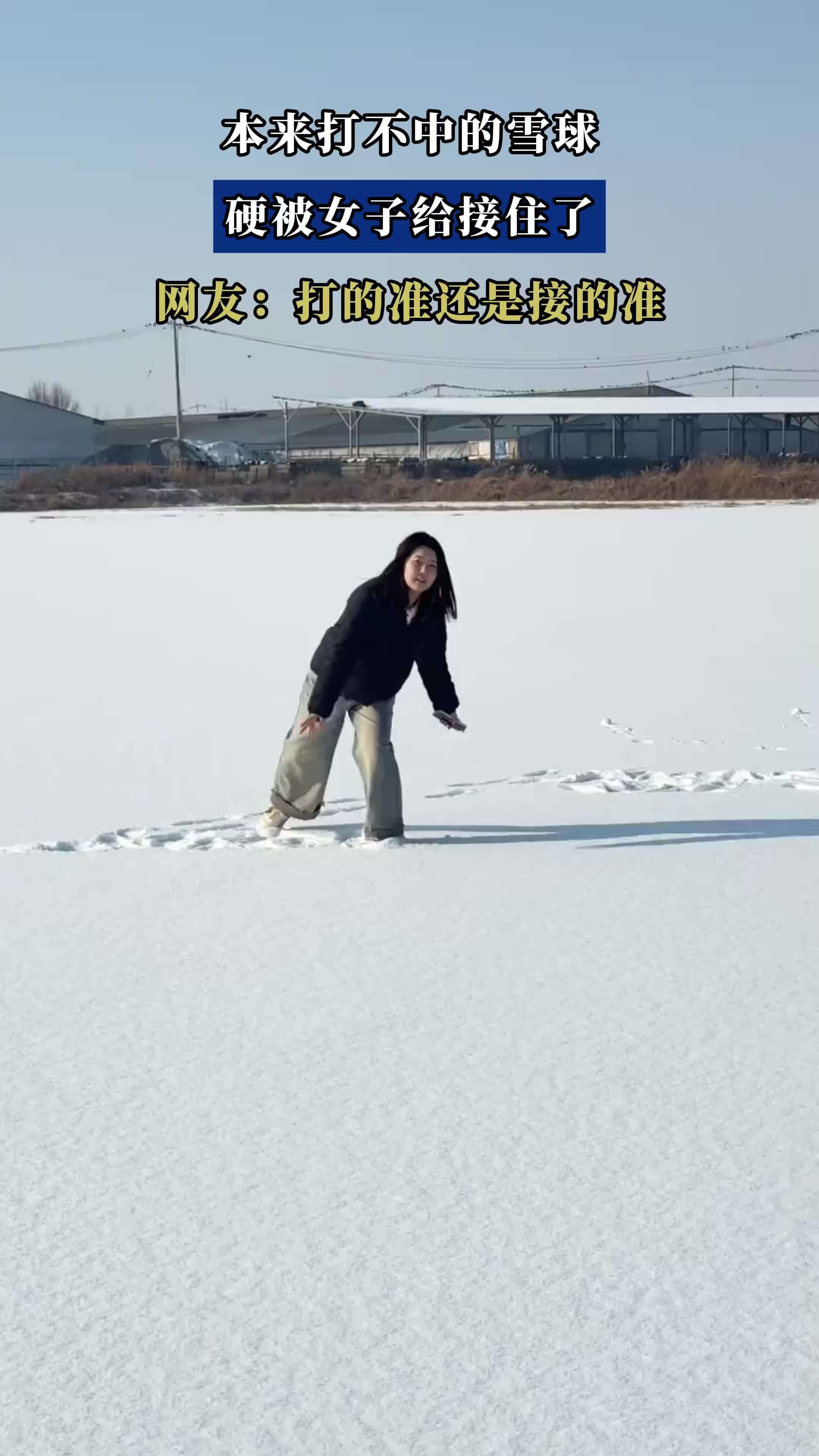 本来打不中的雪球,硬被女子给接住了
