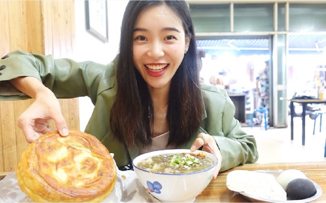 妹子花23元吃西安必吃早餐,8元大碗肉丸糊辣汤,10元牛肉饼金黄酥脆比脸大