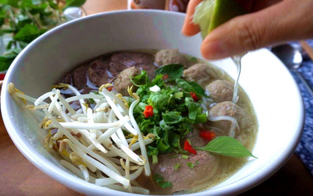 汤底的配方是我的一位越南朋友提供,也是他的餐馆汤底配方,感谢他的帮助。 食材 : 牛骨 775克 牛腱 328克(1条) 带骨的牛腱 496克 带皮生姜片 25克 洋葱 1个 八角 3个 桂皮 5克 香叶 3片 草果 2个 小茴香 1汤匙 花椒 1茶匙 丁香 10个 清水 4500毫升 米酒 60毫升 盐 1/2茶匙 鱼露 1/2 汤匙 九层塔 2条 青柠檬 半个 一些芽菜 切成丝的洋葱 1/4个 朝天椒 2个 葱 1茶匙 香菜 1茶匙
