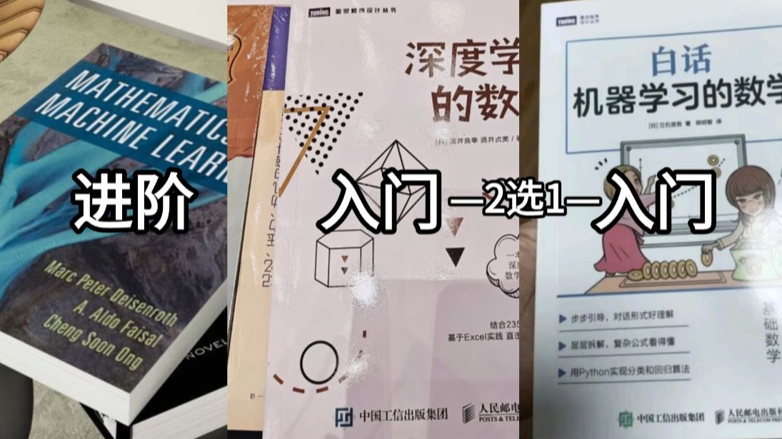 这些可都是曾经让我花了36个小时就掌握了机器学习深度学习所需数学知识的书啊!最近有挺多准研究生来问我,想要补充机器学习深度学习所需的数学知识建议看哪些书?那我今天就给大家推荐三本我个人觉得很不错的书(白话机器学习的数学、深度学习的数学、MATHEMATICS FOR MACHINE LEARNING),并且会告诉你每一本书都分别适合什么人、可以学到什么程度、有什么特点、书的具体内容,希望对大家有帮助吧。