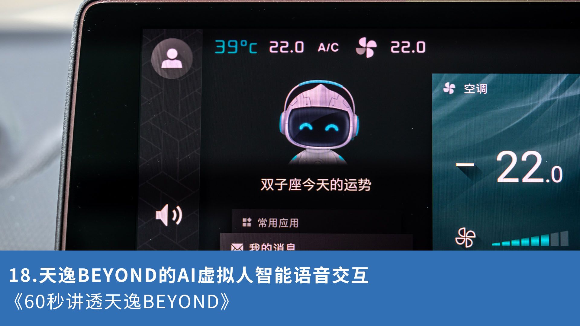 这是《60秒讲透一台车》第二十一期的短视频,本条内容全面介绍天逸BEYOND的AI虚拟人智能语音交互,希望您喜欢。