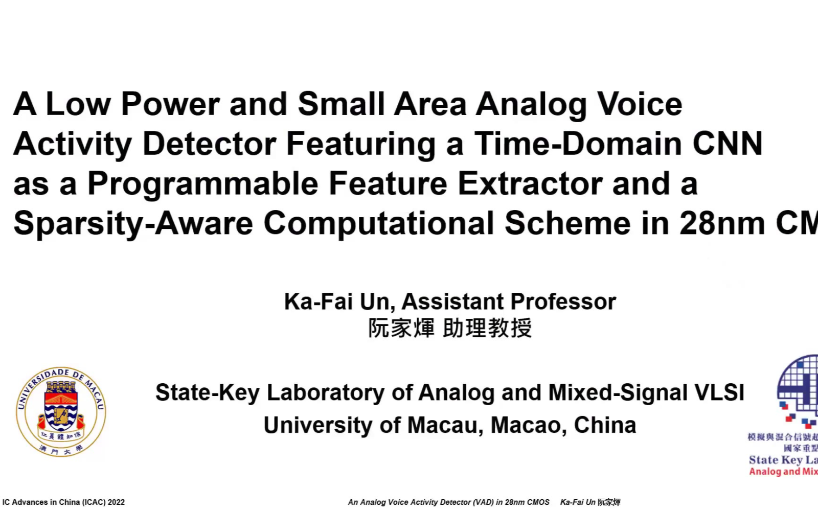 【ICAC 2022 报告视频】低功耗小面积模拟语音活动检测器—澳门大学 阮家辉