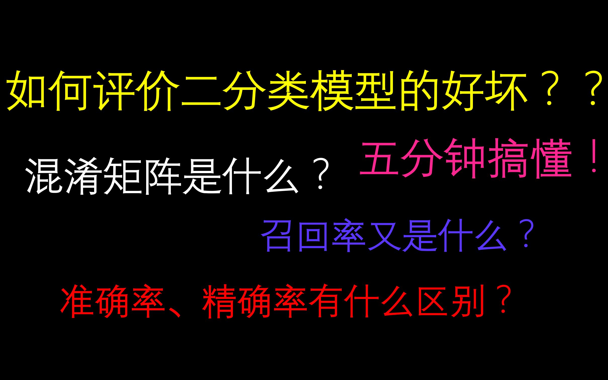 【机器学习】入门系列,五分钟搞懂如何评价二分类模型!混淆矩阵、召回率、精确率、准确率超简单解释,入门必看!