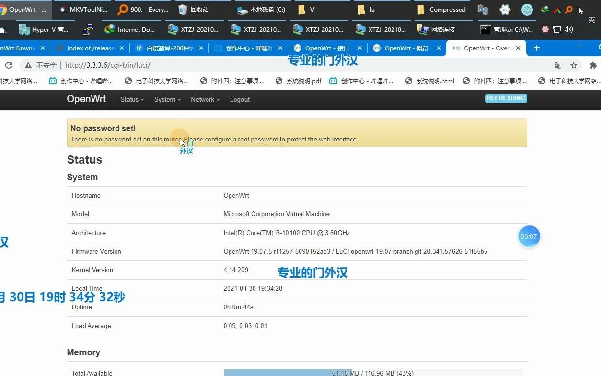 Hyper-V启动OpenWrt19.07.3✓虚拟机软路由x64-桥接网络-1G内存-中文简体Ext4