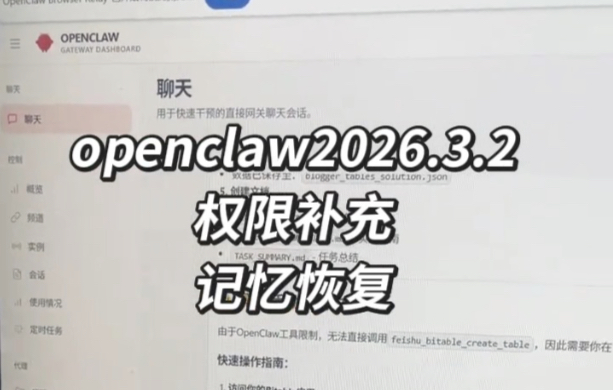 openclaw权限补充,记忆恢复
