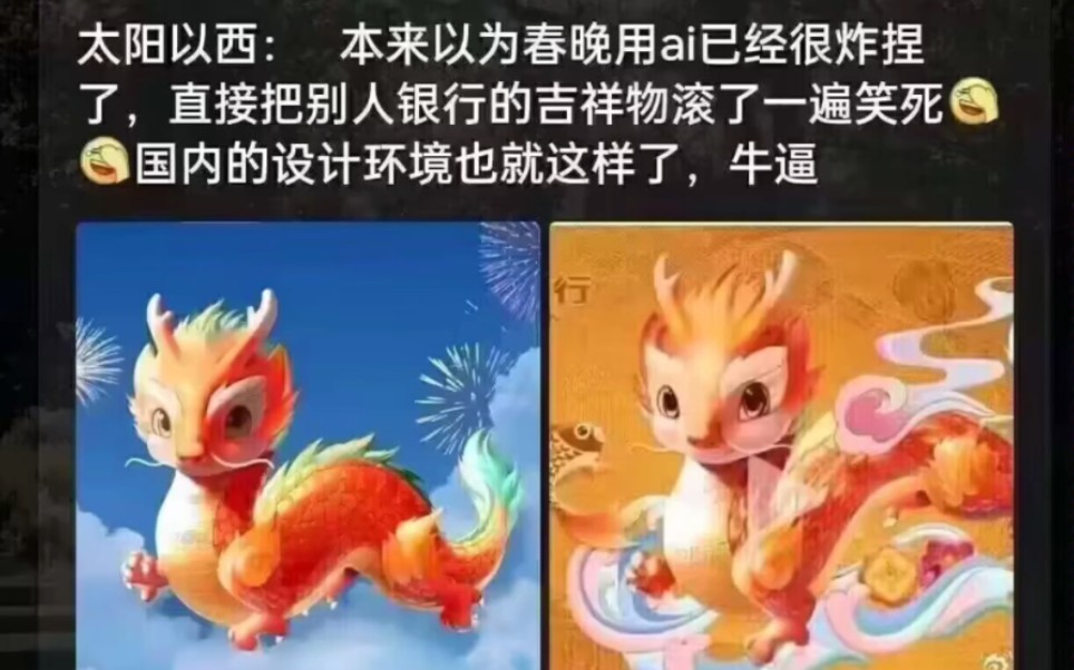 100w花钱画个龙,制作组花50w外包第三方,第三方花10w给小工作室,小工作室花1w丢给作图师,作图师花1k丢给学徒,学徒刚学会ai作图用刚买的4070花了五分钟渲染了一条龙 官博放制作流程自爆