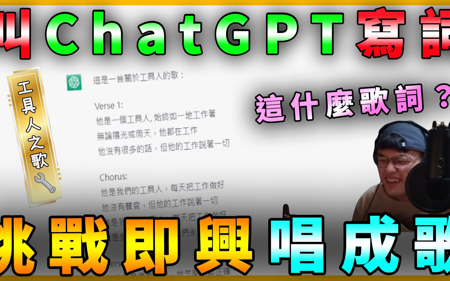 ! 但我今天就是要叫機器人幫我寫歌詞 然後我要挑戰即興唱成一首歌! 來看看AI寫出來的詞會不會很ㄎ一ㄤ 意外搞出了 「單戀」跟「工具人」專屬的歌 未來作詞人不會被AI幹掉吧! 一起看看吧!