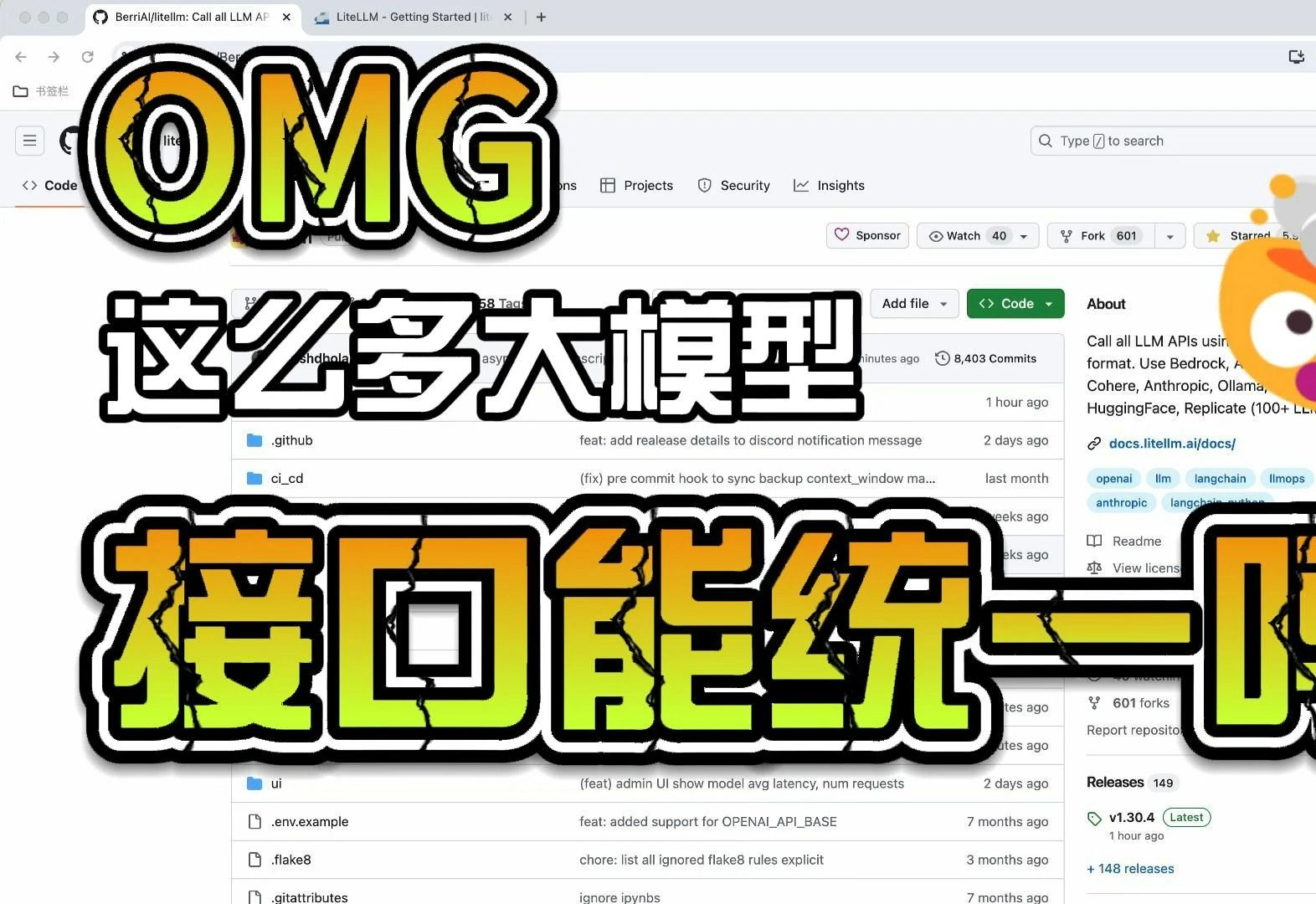 LiteLLM 是一个简化了调用 Anthropic、Azure、Huggingface、Replicate 等服务的库。使用litellm做代理,我们的应用程序可以用统一的接口调用不同的大模型,而不需要关心每个大模型的API细节。 github地址 https://github.com/BerriAI/litellm 文档地址 https://docs.litellm.ai/docs/ ▬▬▬▬▬▬▬▬▬▬▬▬ CONNECT ▬▬▬▬▬▬▬▬▬▬▬▬ ⏯️youtube: https://www.y