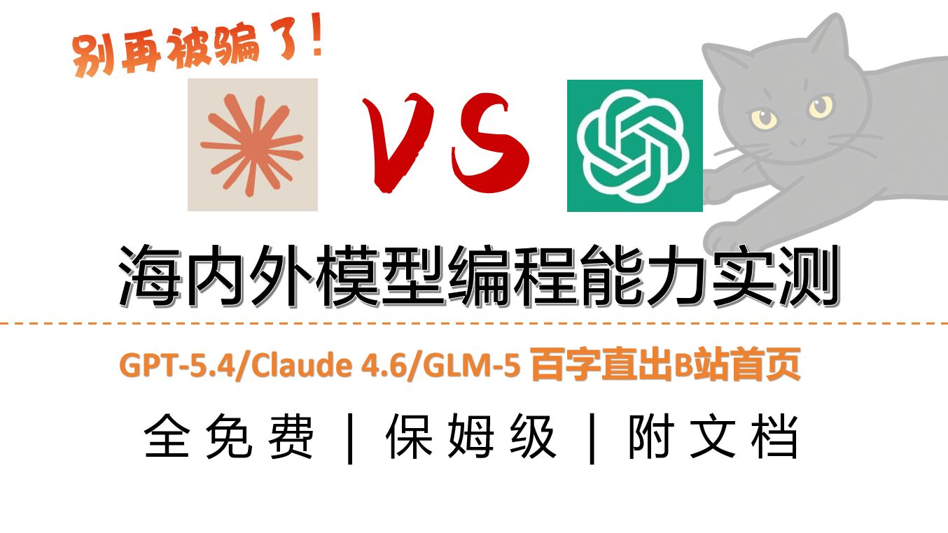 别再被骗了!谁才是真正的 Coding 之神?实测 GPT-5.4/Claude 4.6等大模型,百字人话开发 B 站首页(全免费/保姆级/附文档)