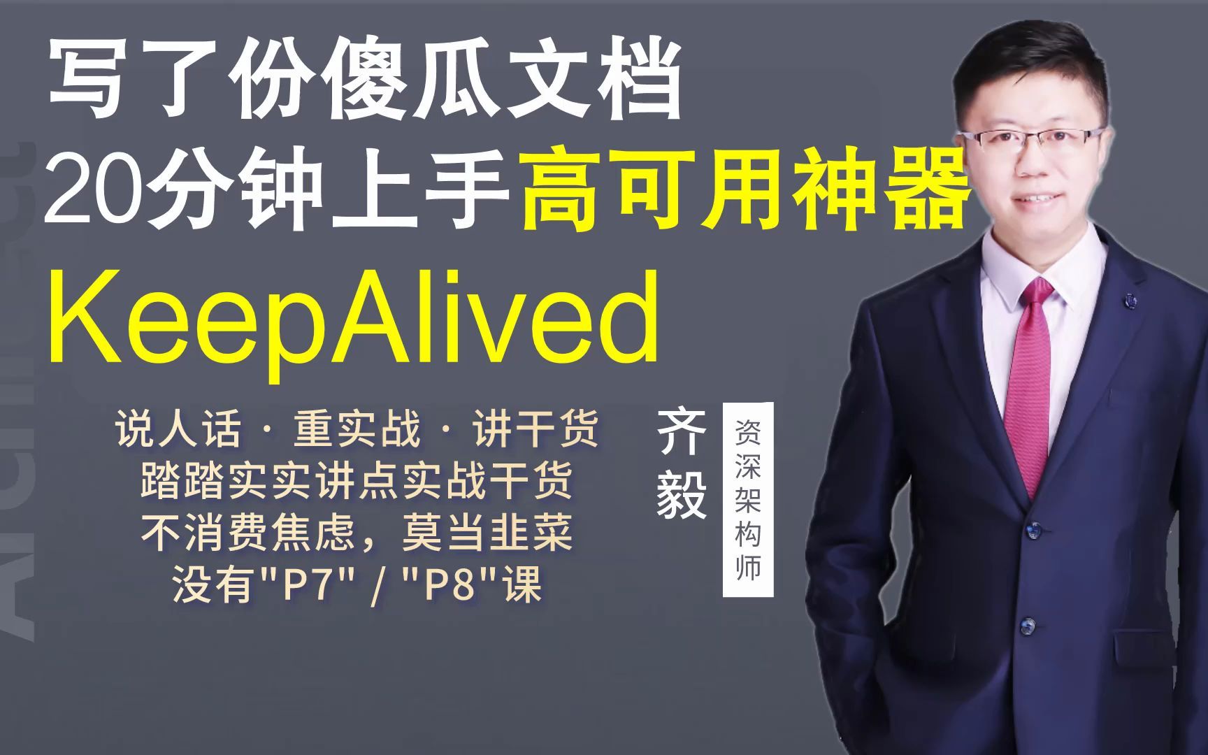 【IT老齐136】写了份傻瓜文档,20分钟上手高可用神器KeepAlived, 视频播放量 11682、弹幕量 7、点赞数 491、投硬币枚数 332、收藏人数 388、转发人数 39, 视频作者 IT老齐, 作者简介 老齐的个人V: itlaoqi001 ~~欢迎前来交流,相关视频:【IT老齐695】OpenTelemetry日志、指标、链路一站解决方案,【IT老齐139】分布式架构设计,RPC与REST两种通信方式该怎么选?,【IT老齐525】InfoQ 2024架构技术趋势报告,【IT老齐155】超实用高并发优化技巧,同步转异步,单条转批量,QPS2000干到8000,【IT老齐676】如何构建最小高可用技术架构,【IT老齐513】经典树形数据结构-闭包表,【IT老齐627】数据仓库、数据中台、数据集市、数据湖有什么区别,【IT老齐144】18倍效率提升,1700万MySQL单表全表扫描优化与分析,【IT老齐369】Vivo推送系统长链接容灾方案,【IT老齐598】命令式编程vs响应式编程