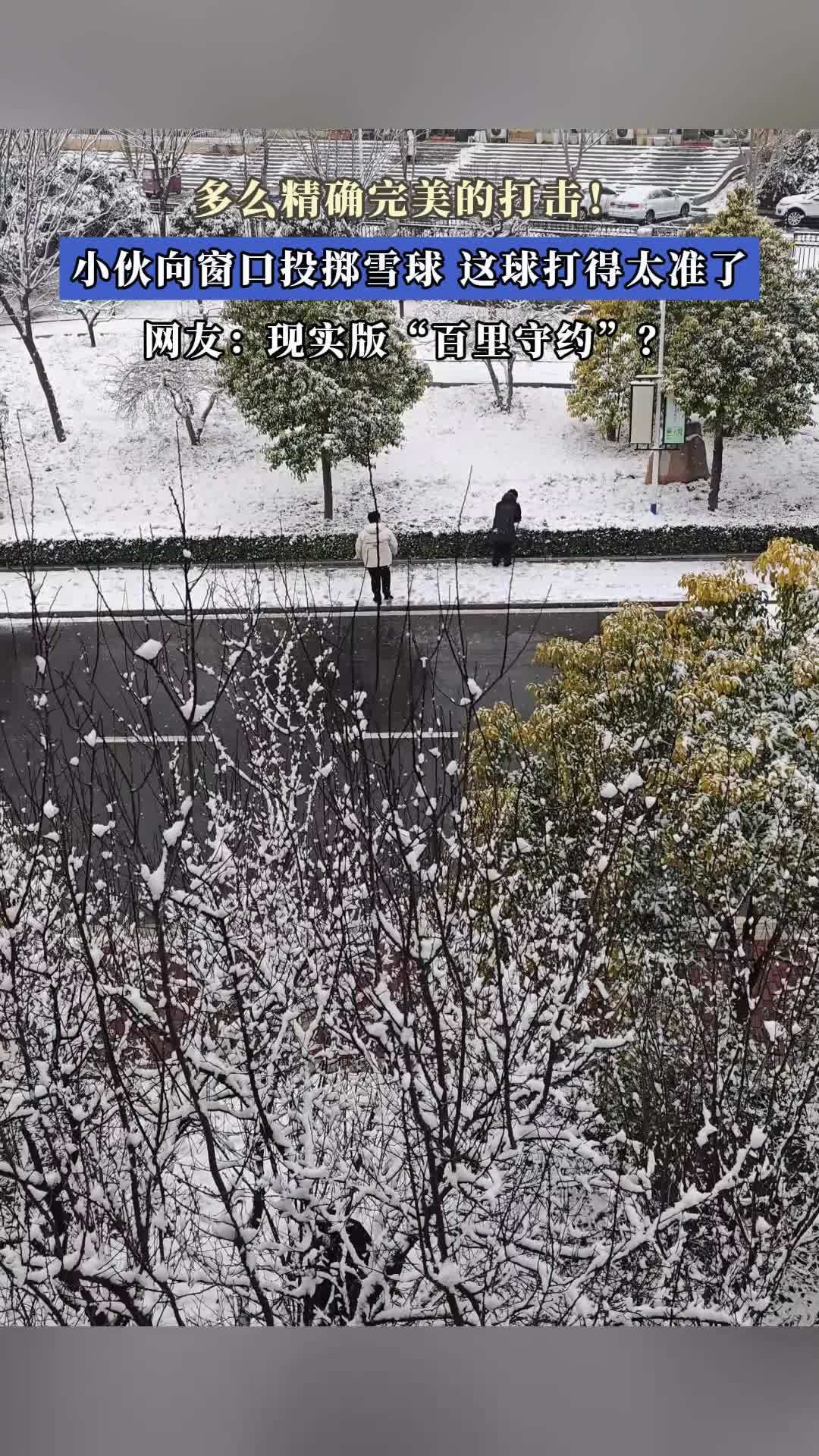 多么精确完美的打击!小伙向窗口投掷雪球,这球打得太准了