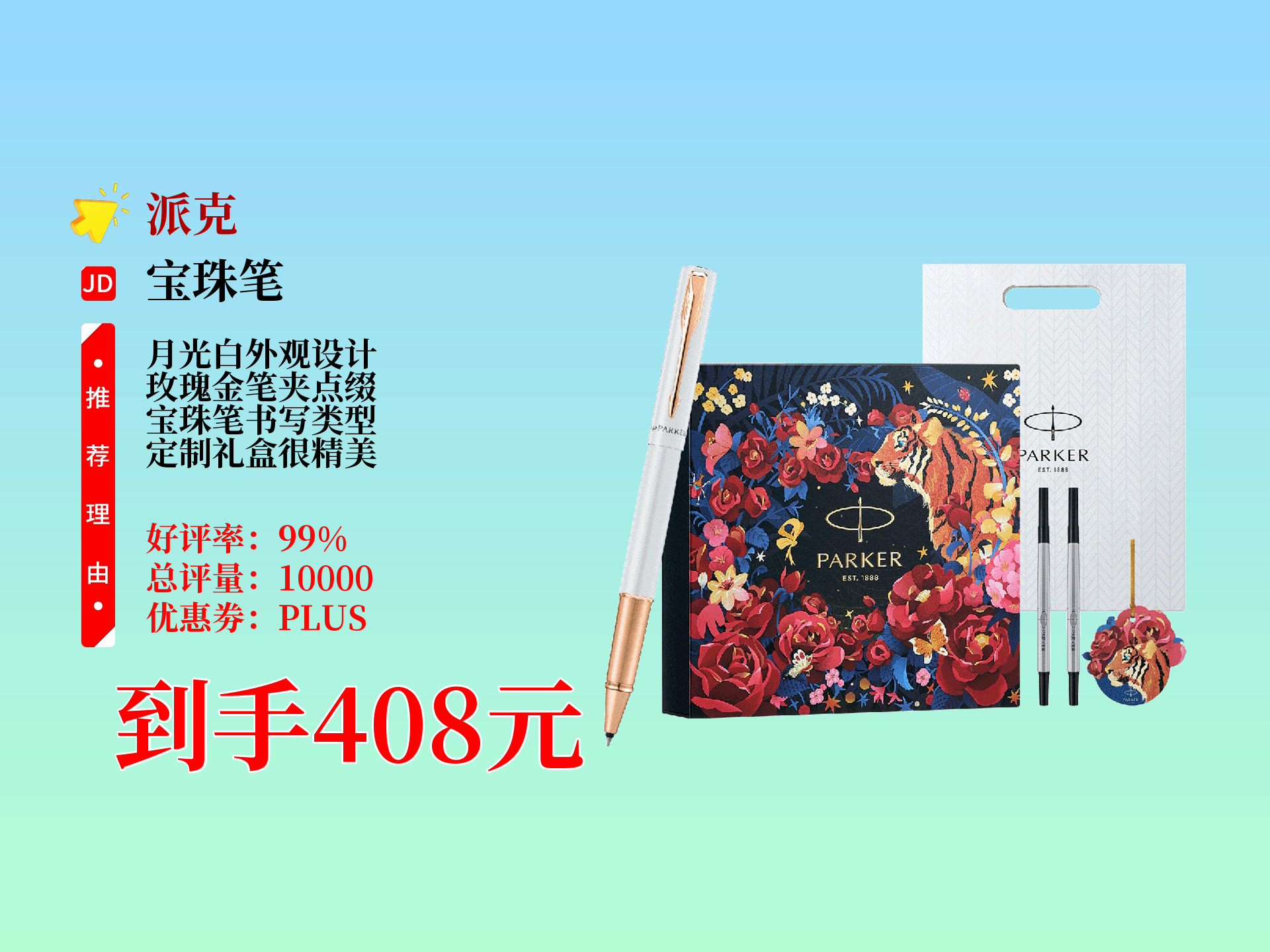 408元!派克威雅XL月光白玫瑰金夹宝珠笔,可定制,是学生成人练字、送女士的超棒生日礼物,虎嗅蔷薇礼盒超有格调!