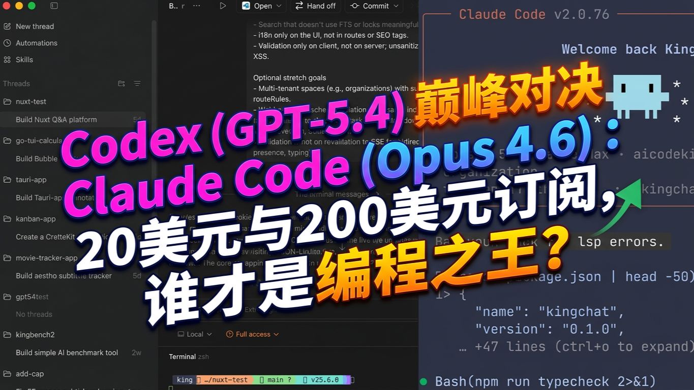 Codex (GPT-5.4) 巅峰对决 Claude Code (Opus 4.6):20美元与200美元订阅,谁才是编程之王?