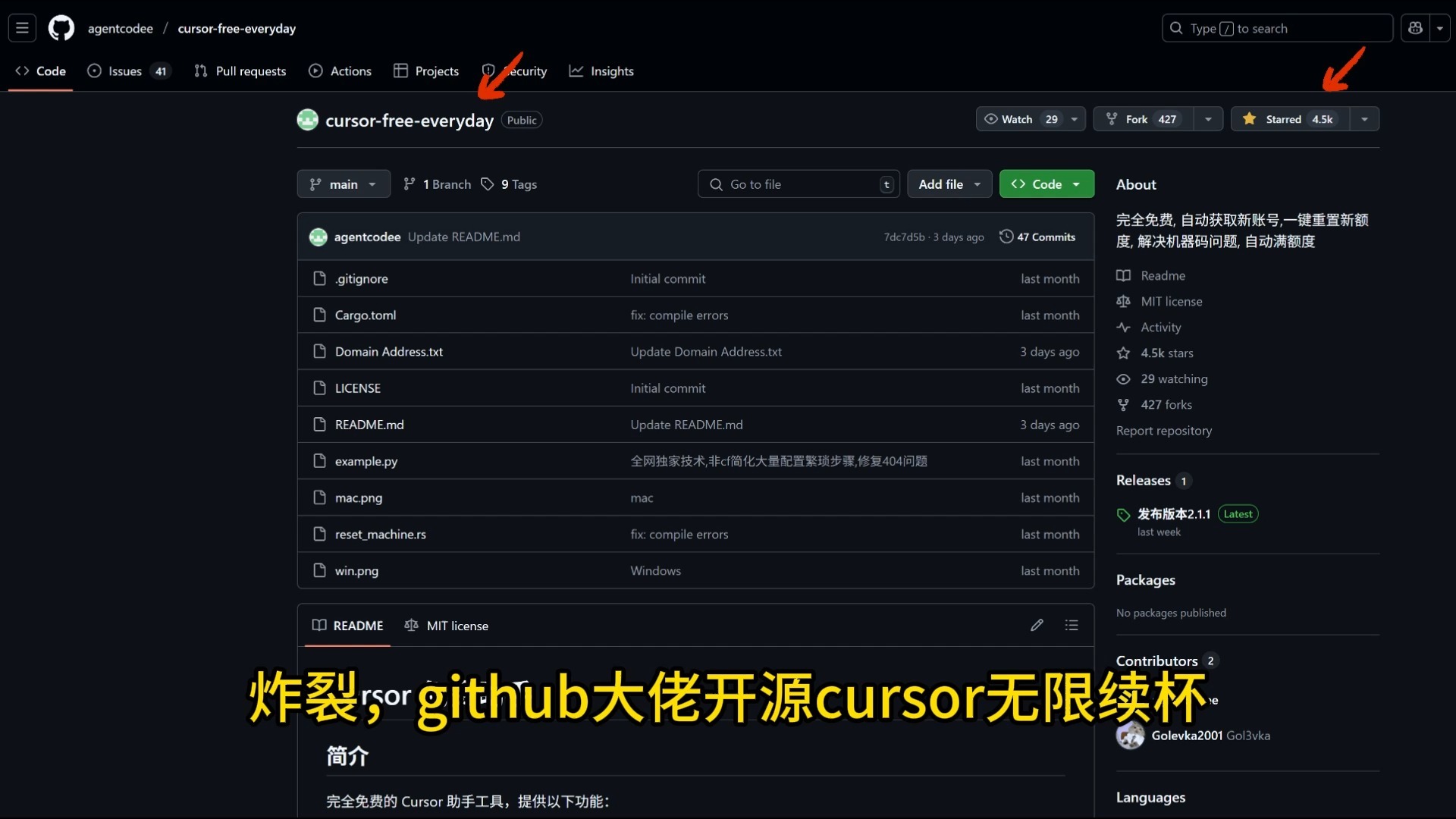 项目名叫cursor-free-every,开源地址是https://