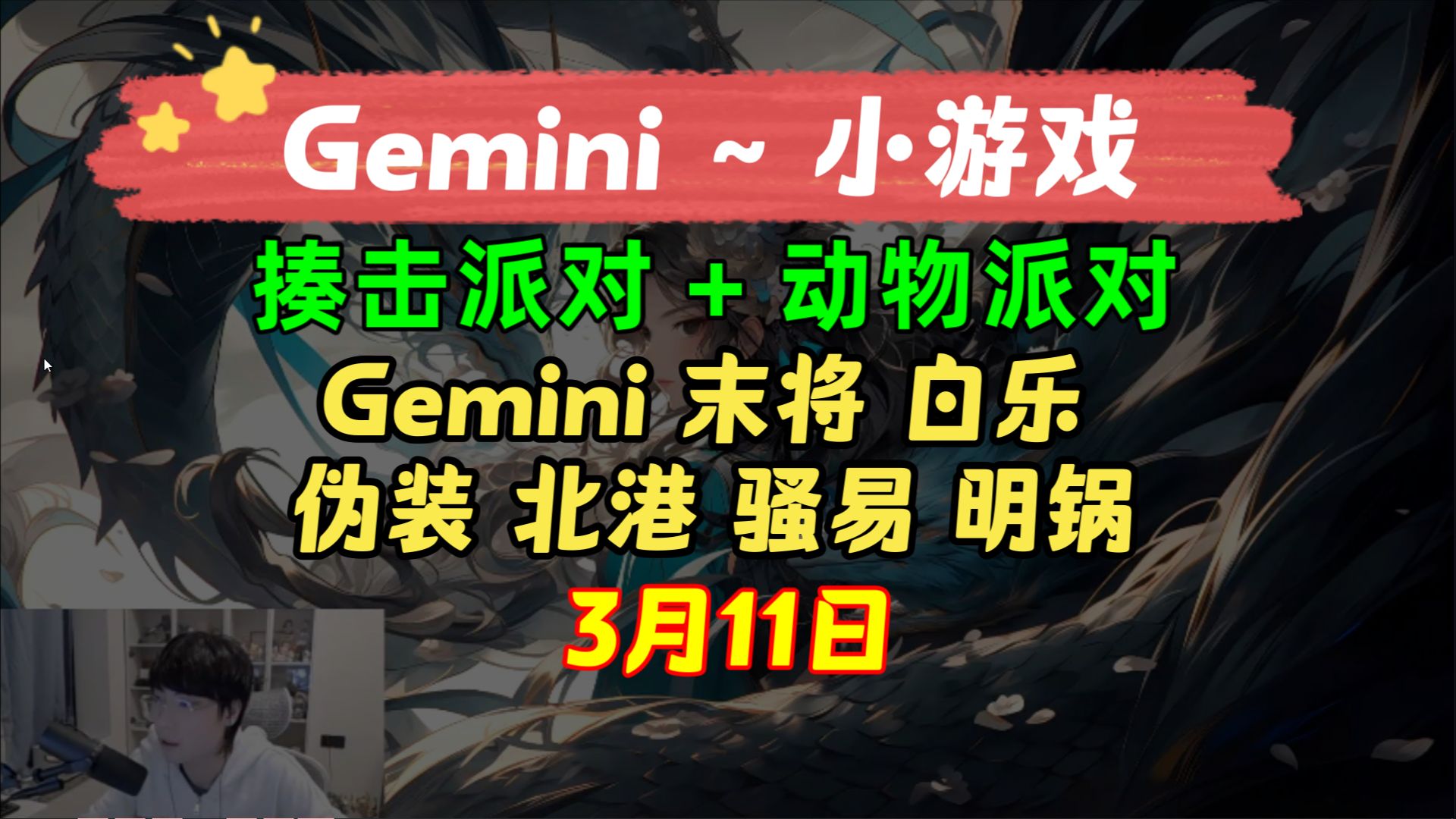 Gemini 小游戏】(揍击派对+动物派对) 3月11日 猛兽派对 KPL二路解说主播直播录像回放合集