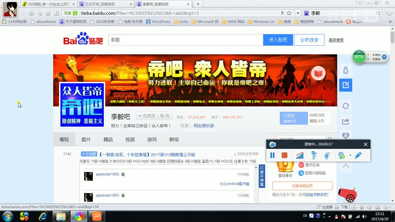 3.百度贴吧你的贴子,在贴吧首页停留时间