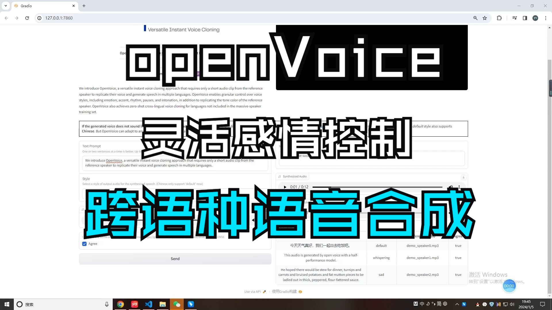 https://github.com/myshell-ai/OpenVoiceOpenVoice,一种多功能的即时语音克隆方法,只需要参考说话者的一小段音频片段来复制他们的声音并生成多种语言的语音。OpenVoice支持对语音风格的细粒度控制,包括情绪、口音、节奏、停顿和语调,此外还可以复制参考说话者的音调颜色。OpenVoice还为未包含在大规模说话者训练集中的语言实现了零采样跨语言语音克隆。O, 视频播放量 6353、弹幕量 1、点赞数 89、投硬币枚数 23、收藏人数 327、转发人数 42, 视频作者 小李子学习AI, 作者简介 研究生在读,相关视频:windows本地秒出结果语音合成kaldi,延迟1s以内,简易搭建教程。,第三代GPT-SoVITS最强声音克隆,只需3秒语音,完美声音复刻+在线免费使用!,bert-vits2本地训练,实现个性化音色合成,合成自己的声音。,110. 新一代Kaldi: 中英文语音合成+Android++Kokoro 1.0,AI克隆声音音色,任意语音克隆!下载即用,零收费!CosyVoice & DreamTalk 本地安装包!,【声音克隆】利用AI,我克隆出了申公豹的声音,微软推出仅需文本内容即可转成真人视频的工具:Deepfakes Creator,通过文本输入生成逼真的会说话的真人视频,你只要上传想要化身模仿的人的照片。,LiveTalking+Qwen+TTS非常棒的开源组合【流式数字人】,OpenVoice:一种多功能的即时语音克隆方法,只需要参考说话者的一小段音频片段来复制他们的声音并生成多种语言的语音。,EmotiVoice易魔声,特色情感合成功能,网易有道强力开源中英双语语音克隆