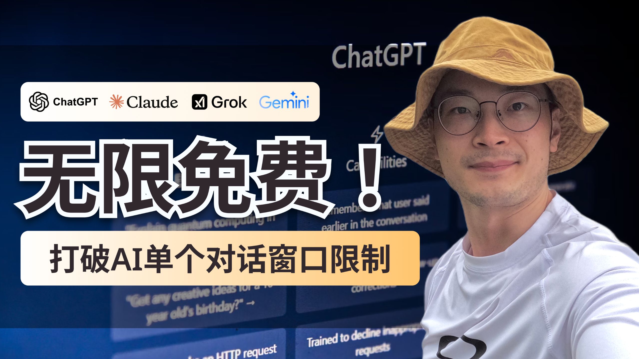 你是不是经常在用ChatGPT、Claude的时候,对话聊到一半就提示“超出长度限制”? 每次开启新对话都要重新解释背景,费时又费劲。 本期视频我将带你一步步实操演示:如何通过一个简单的免费工具,实现ChatGPT、Claude、Grok、Gemini的无限续杯,让AI记住你所有对话内容,继续无缝协作! 适合写作、代码、项目管理、脚本创作等所有高强度使用AI的场景。 🎯 工具推荐 📂 实操演示 📈 场景应用 📌 全平台支持(ChatGPT / Claude / Grok / Gemini)