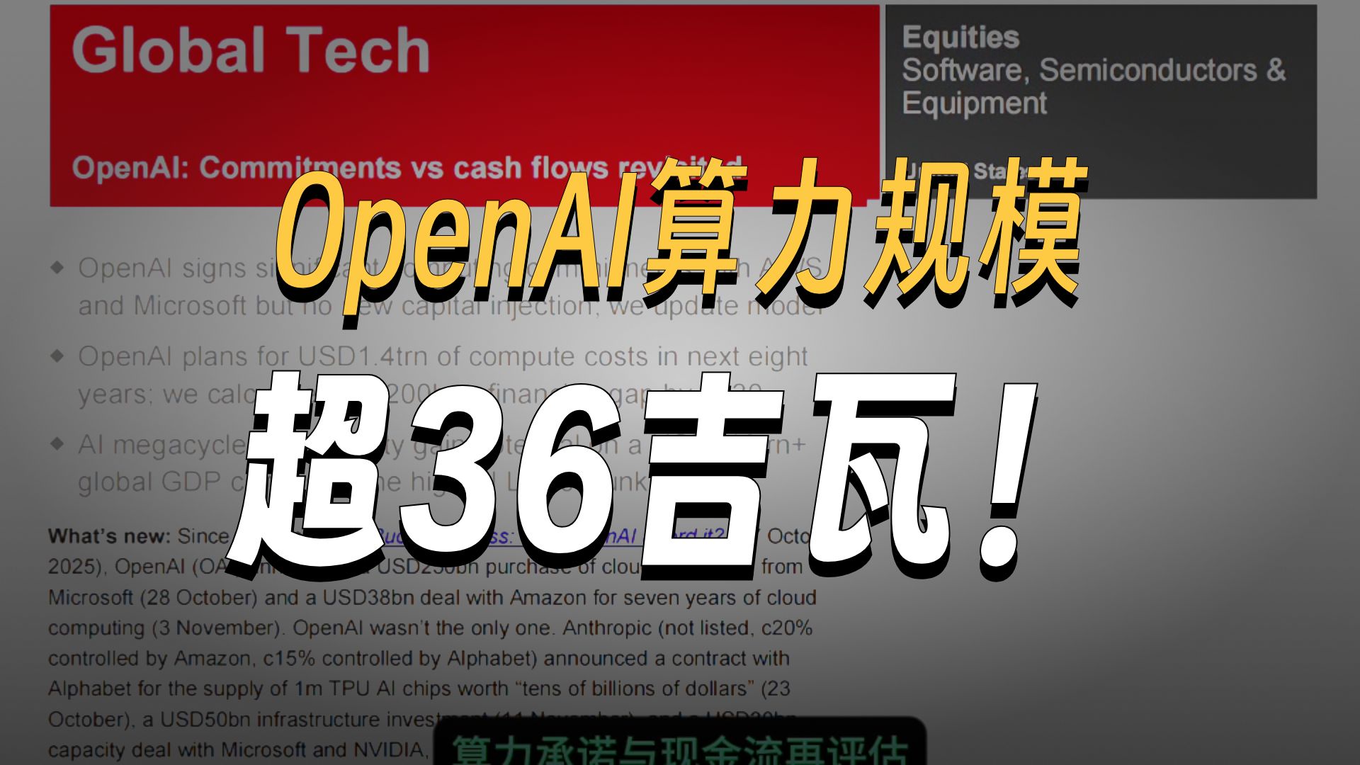 过去一个多月里,OpenAI 连续和多家云计算与芯片厂商签下了体量巨大的算力采购协议:包括向微软追加 2,500 亿美元的云服务承诺,以及向亚马逊签下 380 亿美元、为期 7 年的云计算合约。结合此前与 NVIDIA、AMD、甲骨文、CoreWeave 等合作伙伴的安排,汇丰测算,OpenAI 整体规划中的算力规模已经达到大约 36 吉瓦。按模型测算,在 2025 年下半年到 2030 年期间,仅数据中心租金支出就可能累计达到 7,920 亿美元,整个 8 年左右的算力支出规划则接近 1.4 万亿美元。