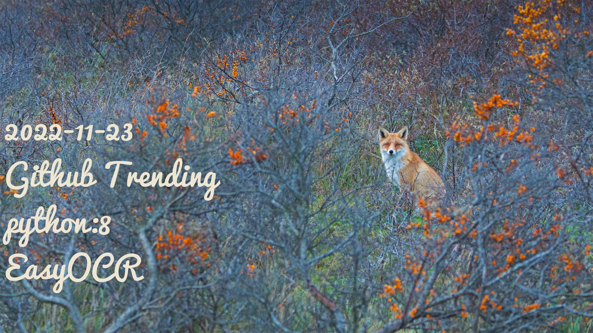 bgm: [도자캣?] Kiss me more (feat. SZA) - Doja Cat, SZA (cover) repo: https://github.com/JaidedAI/EasyOCR stars: 16358 description: Ready-to-use OCR with 80+ supported languages and all popular writing scripts including Latin, Chinese, Arabic, Devanagari, Cy