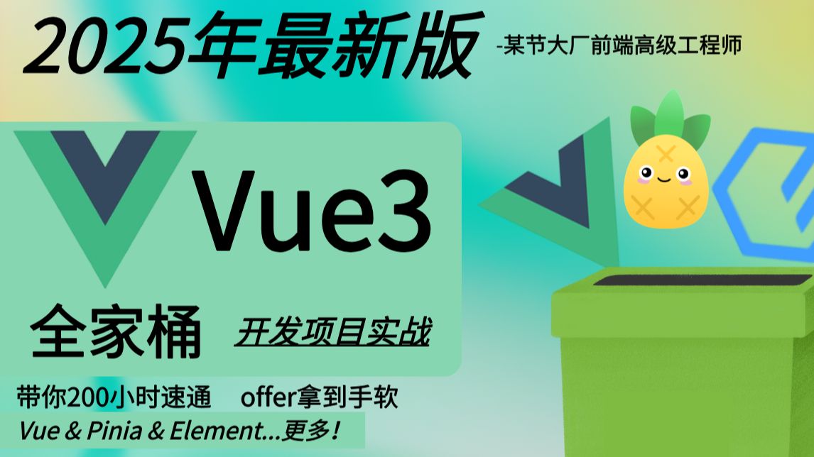 【25年最新版已完结】Vue3.4+Pinia+ElementPlus全家桶项目实战教程!!!