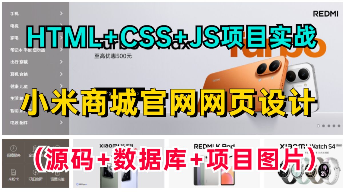 2026最新HTML+CSS+JS实战练手项目— —小米商城官网网页设计(附源码+数据库+项目图片),超详细保姆级实战教程,零基础小白也能学会!!! 视频制作不易,麻烦大家点下关注,给个一键三连啊【点赞、投币、收藏】多多支持奥!!!