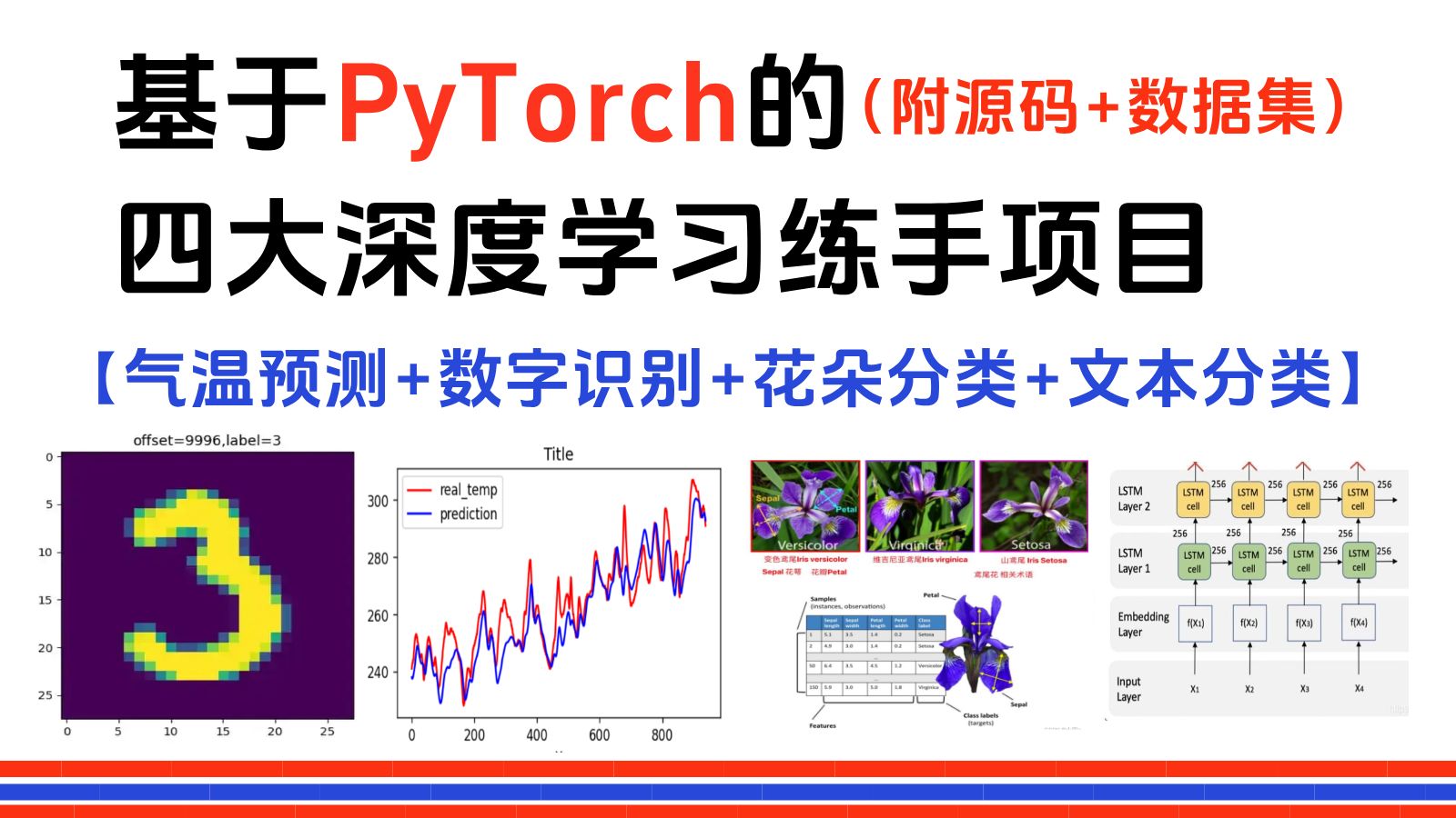 的四大深度学习练手项目:数字识别+气温预测+花朵分类+文本分类,原理详解+项目实战,看完就能跑通!毕设/深度学习/神经网络/人工智能