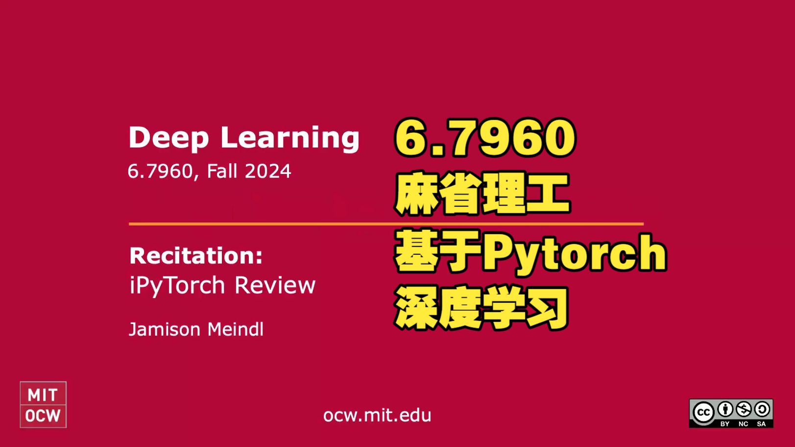 https://www.youtube.com/playlist?list=PLUl4u3cNGP63URZnh5iqBzDTDYPUTQT-8 全部的课程资源位于:https://ocw.mit.edu/courses/6-7960-deep-learning-fall-2024/download/
