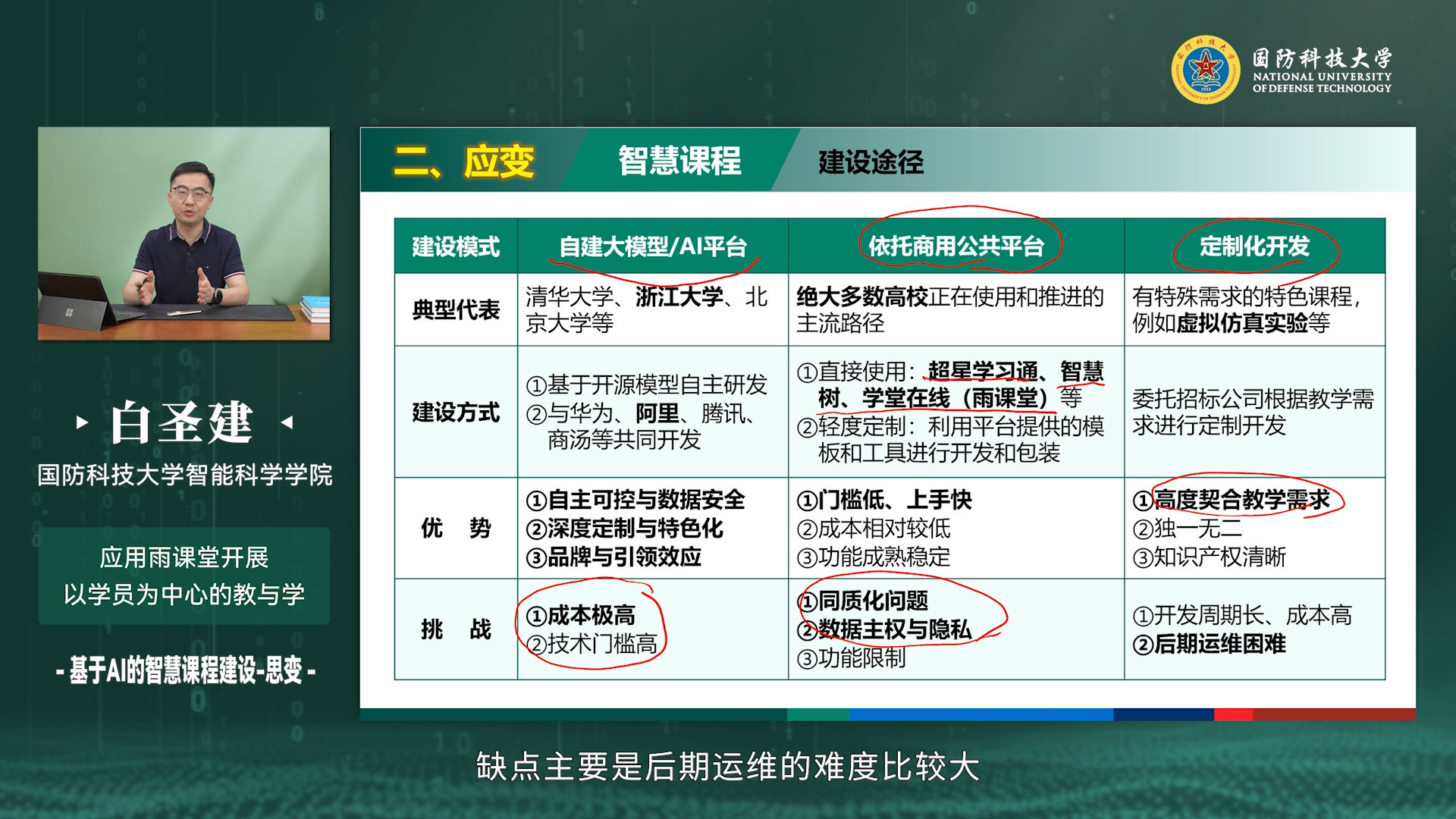 【专题介绍】数智技术正深度推动高等教育教学模式与方法的变革,如何开展以学生为中心的教与学已成为核心命题。为落实高等教育数字化转型战略行动,本课程面向新入职教研人员及教学骨干的发展需求,以“雨课堂”技术应用为主线,系统设计“技能篇—案例篇—AI篇”三大教学模块。技能篇涵盖雨课堂基本功能、雨课件制作、课堂授课流程及直播教学等内容;案例篇聚焦基于雨课堂的混合式教学实施,以及数据驱动的形成性评价体系构建、反馈机制与教学持续改进;AI篇则围绕人工智能赋能教育教学,从“识别—应变—思变”三个维度,探讨智慧课程建设的时