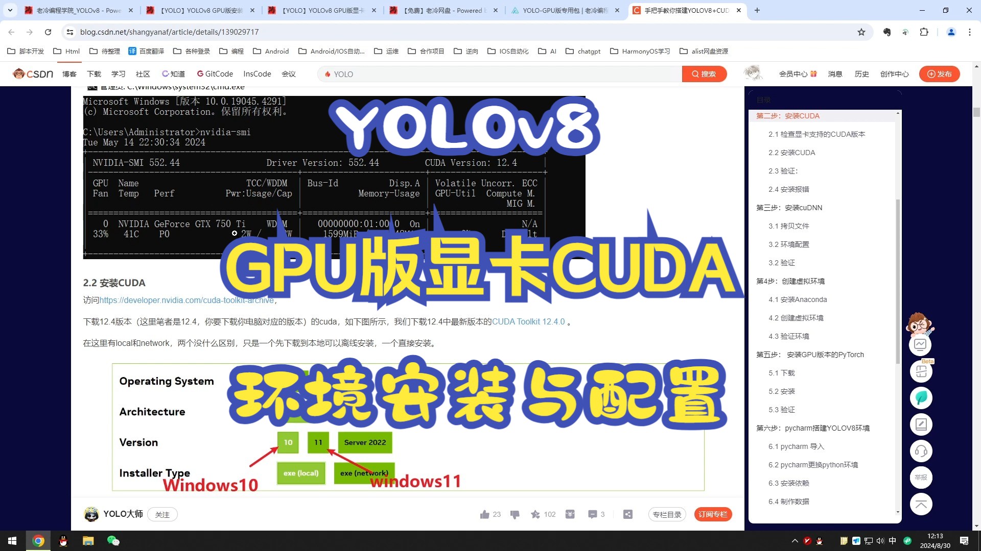 【YOLO】YOLOv8 GPU版显卡CUDA环境安装与配置
