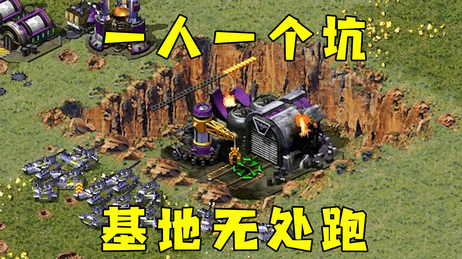 红警一人一块坑!基地在坑里,坦克攻击无处可跑!