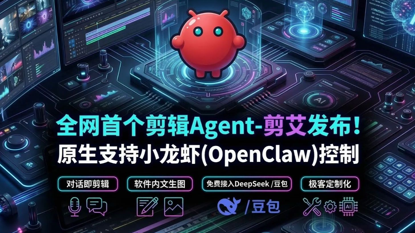 【全网首个】剪辑Agent-剪艾发布,聊天实现剪辑!且原生支持 OpenClaw 控制视频剪辑!