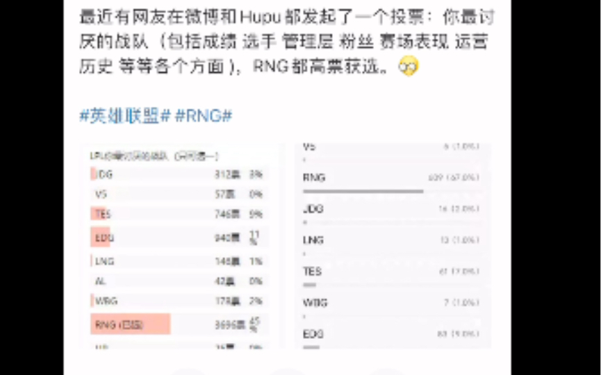 都发起了一个投票:你最讨厌的战队 rng排第一