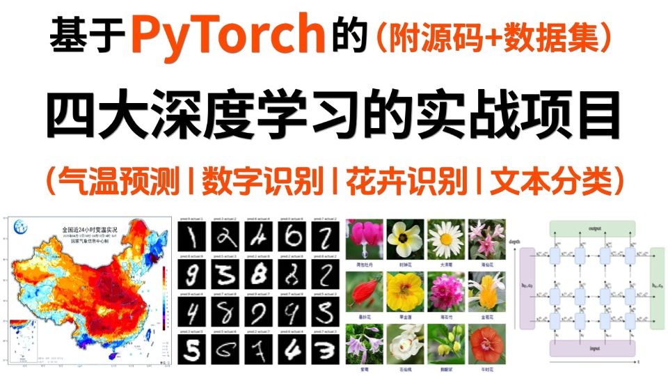 的四大深度学习实战项目——气温预测+数字识别+花朵图像识别+LSTM文本分类,原理详解+项目实战,看完就能跑通!