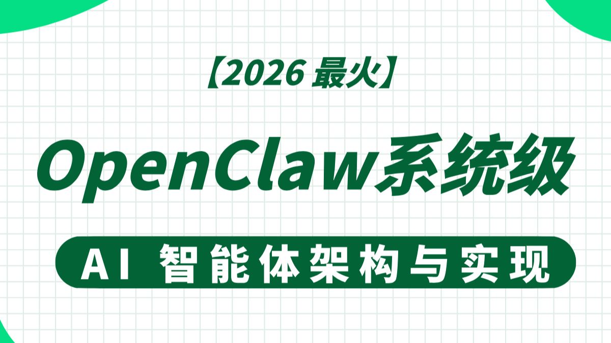 【2026 最火】OpenClaw 系统级 AI 智能体架构与实现|前端全栈 AI 修炼指南 课程对应资料直接点链接 https://www.bilibili.com/opus/997693552554147844免费领