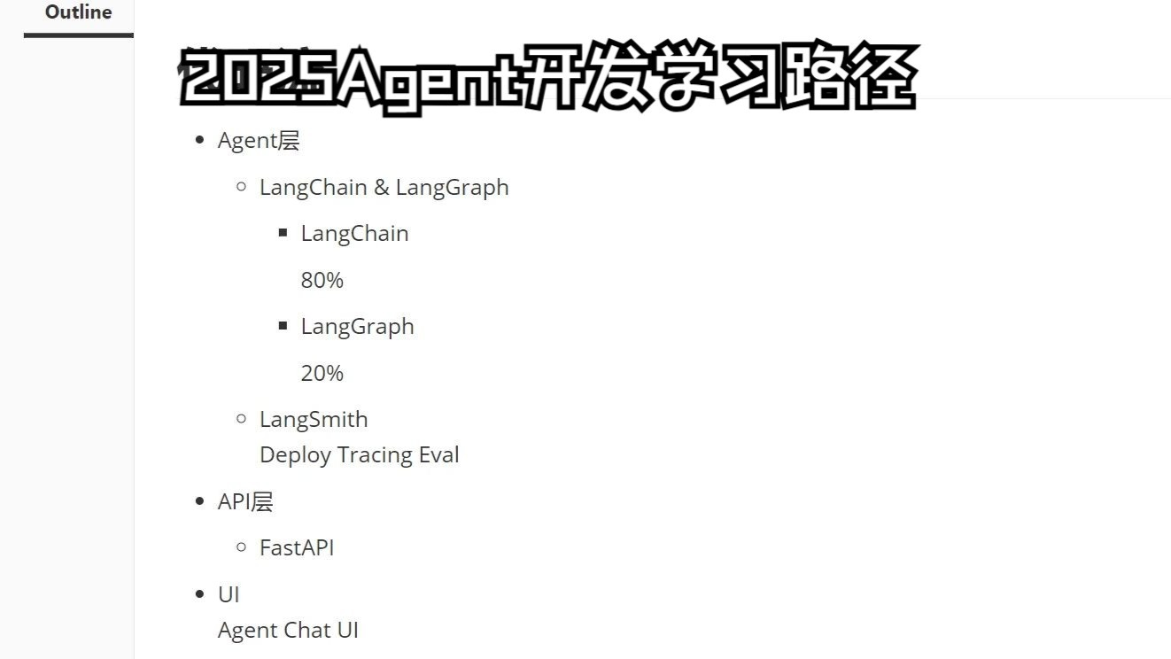 Agent极简学习路径,这些是核心,学习过程中遇到新的就通过ChatGPT快速学习即可 # 代码流 - Agent层 - LangChain & LangGraph - LangChain 80% - LangGraph 20% - LangSmith Deploy Tracing Eval - API层 - FastAPI - UI Agent Chat UI - Docker # 拖拽流 - Dify - Docker