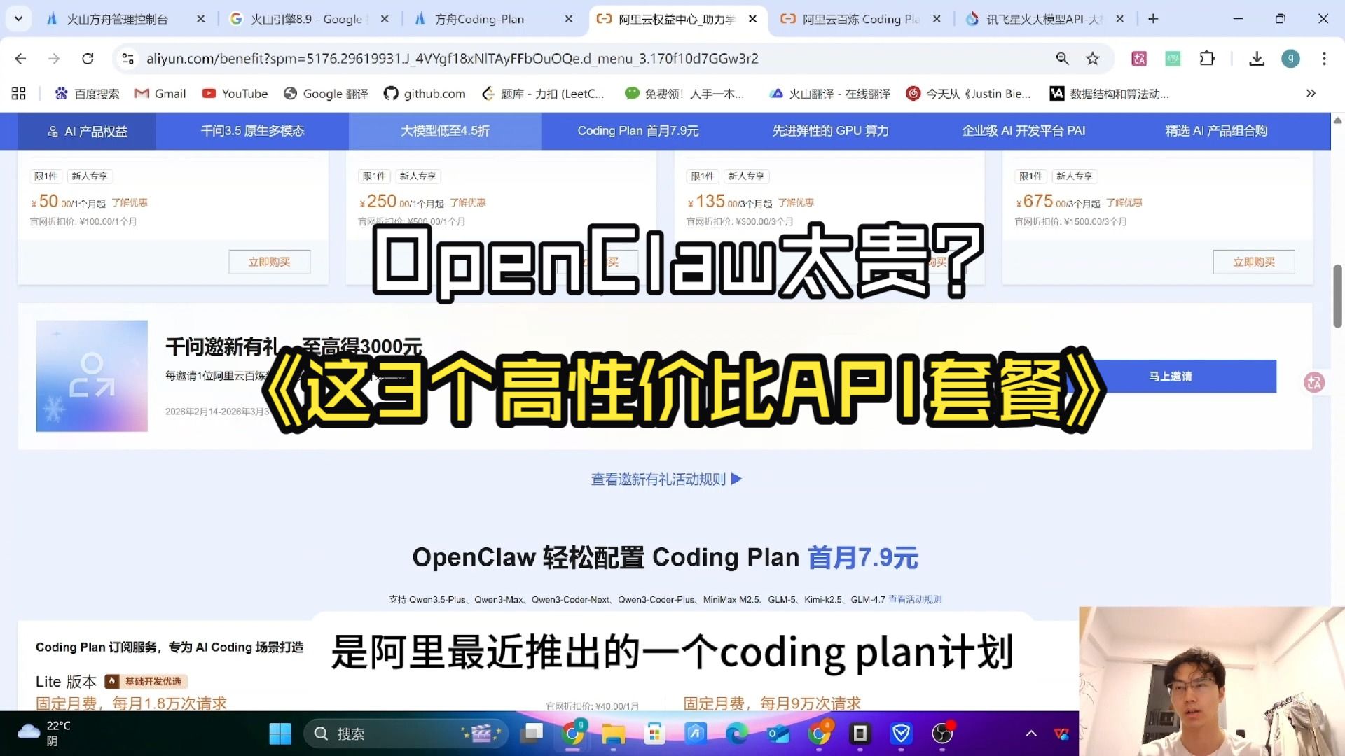 阿里:https://www.aliyun.com/benefit/ai/aistar?clubBiz=subTask..12408202..10263.. 火山:立即订阅:https://volcengine.com/L/0imTu23cOzM/ 邀请码:7P4BEJVH 讯飞星辰Mass 平台:https://xinghuo.xfyun.cn/sparkapi