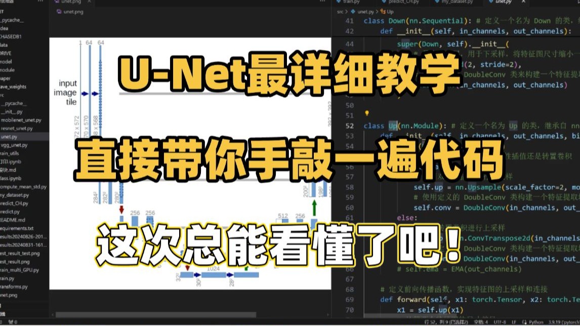 从UNet网络原理到具体项目实战,逐行讲解模型训练、加载训练得到的权重进行推理,更换自己的数据进行训练,零基础也能轻松看懂!