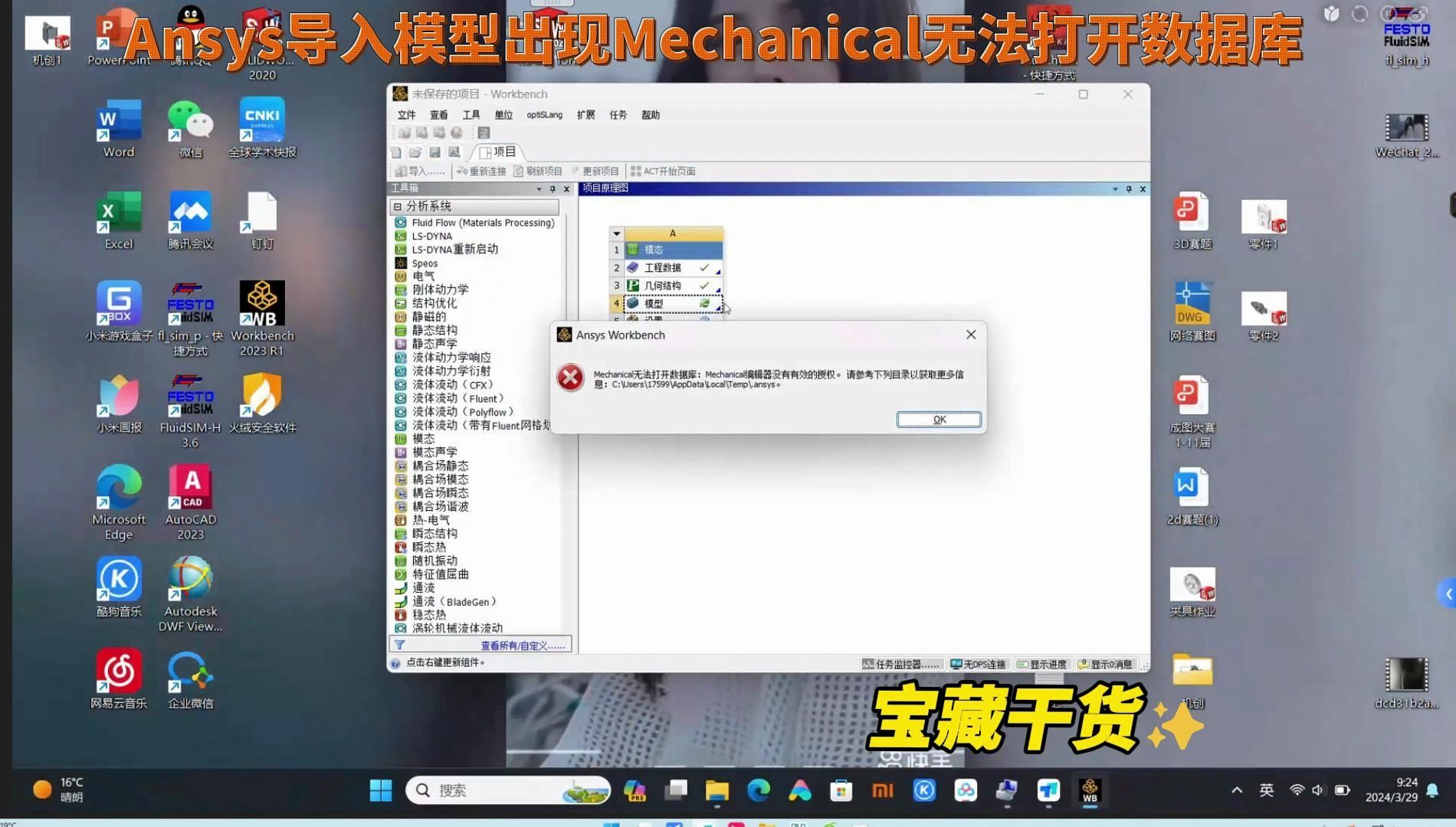 解决Ansys2023打开导入的模型时,出现Mechanical无法打开数据库:Mechanical编辑器没有有效的授权。