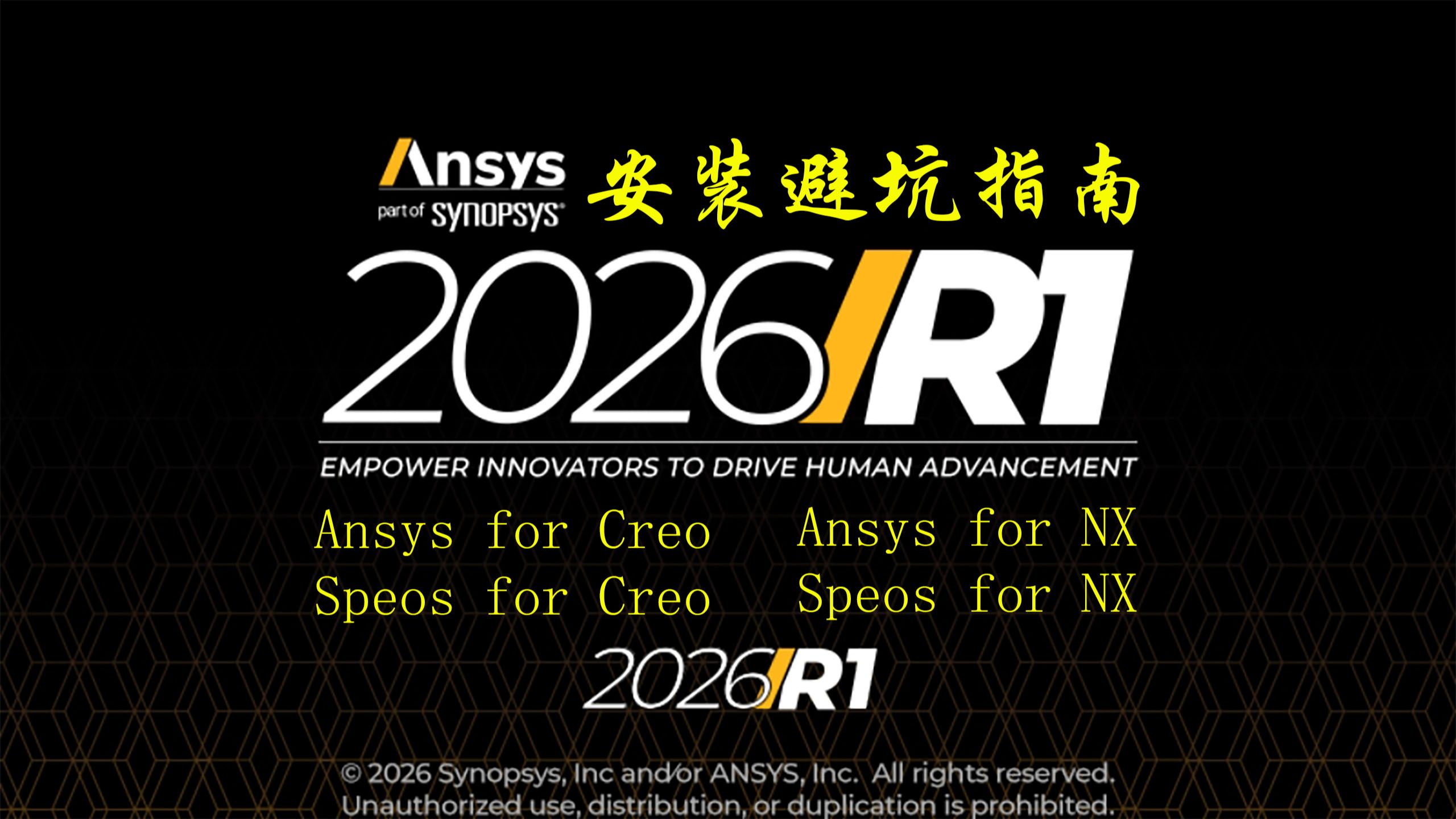 本视频为 Ansys 2026 R1 专业工业软件安装教程,聚焦 Ansys 软件、Ansys for Creo、Ansys for NX、Speos for Creo、Speos for NX 等核心模块的一键安装与避坑技巧,覆盖 有限元仿真、光学仿真、设计仿真一体化 等核心应用场景,助力机械设计与结构仿真工程师高效完成 工业软件安装、软件下载 与模块配置,解决安装过程中模块缺失、启动失败等常见问题,实现从结构力学、热电气到流体流动的全流程仿真覆盖。