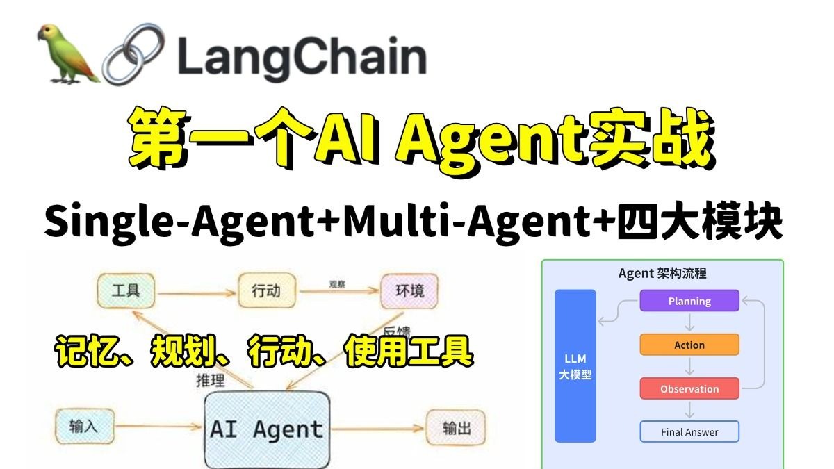 【大模型开发人员必备】半小时搞懂AI Agent实战,Single-Agent+Multi-Agent+四大模块+LangChain